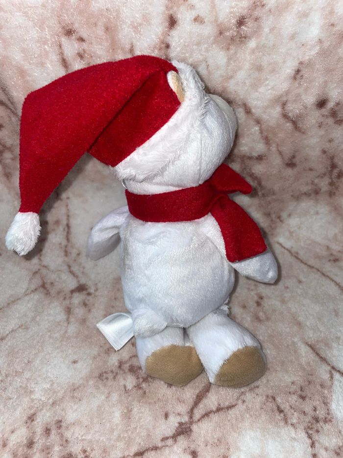 Peluche ours blanc polaire écharpe bonnet Noël rouge Kinder Ferrero - photo numéro 3
