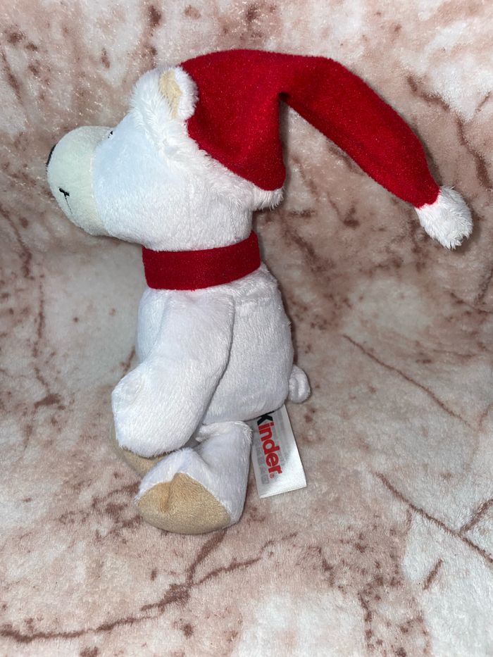 Peluche ours blanc polaire écharpe bonnet Noël rouge Kinder Ferrero - photo numéro 1