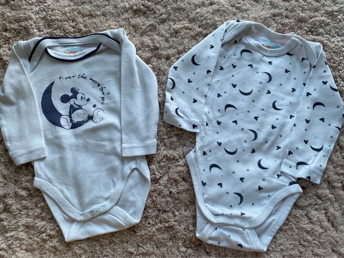 Lot de 2 bodies manches longues Mickey 6 mois - photo numéro 1