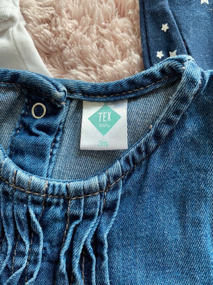 Ensemble robe en jeans et 2 tee-shirts manches longues Tex baby 3 mois - photo numéro 1