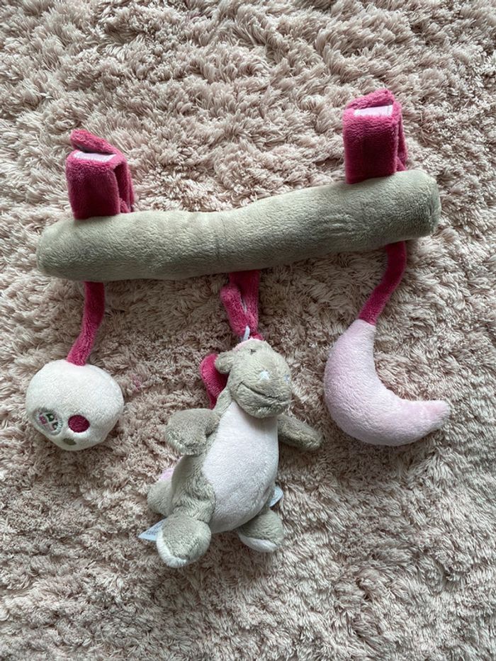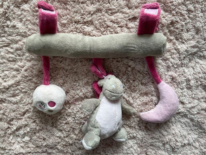 En parfait état, peu servit. Le dinosaure du milieu se retire et peut-être laver par contre la tonalité du petit rond ne fonctionne plus. J’ai également le Nid d’ange et le mobile de la même collection dans mon dressing. #daisyc08_fillepuericulture #daisyc08_peluches
