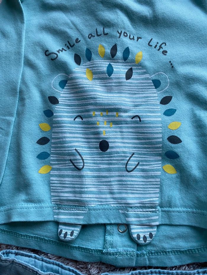 En parfait état, comme neuf. Le pantalon et réglable à la taille et le tee-shirts s’ouvre entièrement à l’arrière pour faciliter le change. #daisyc08_garçon6mois