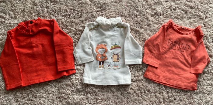 Lot de 3 tee-shirts manches longues Boboli et Kiabi 1 mois