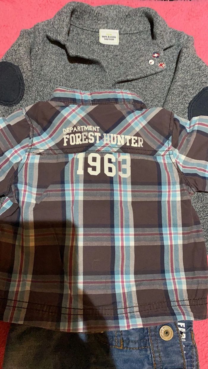 Ensemble jeans chemise et gilet 9mois tape à l’oeil