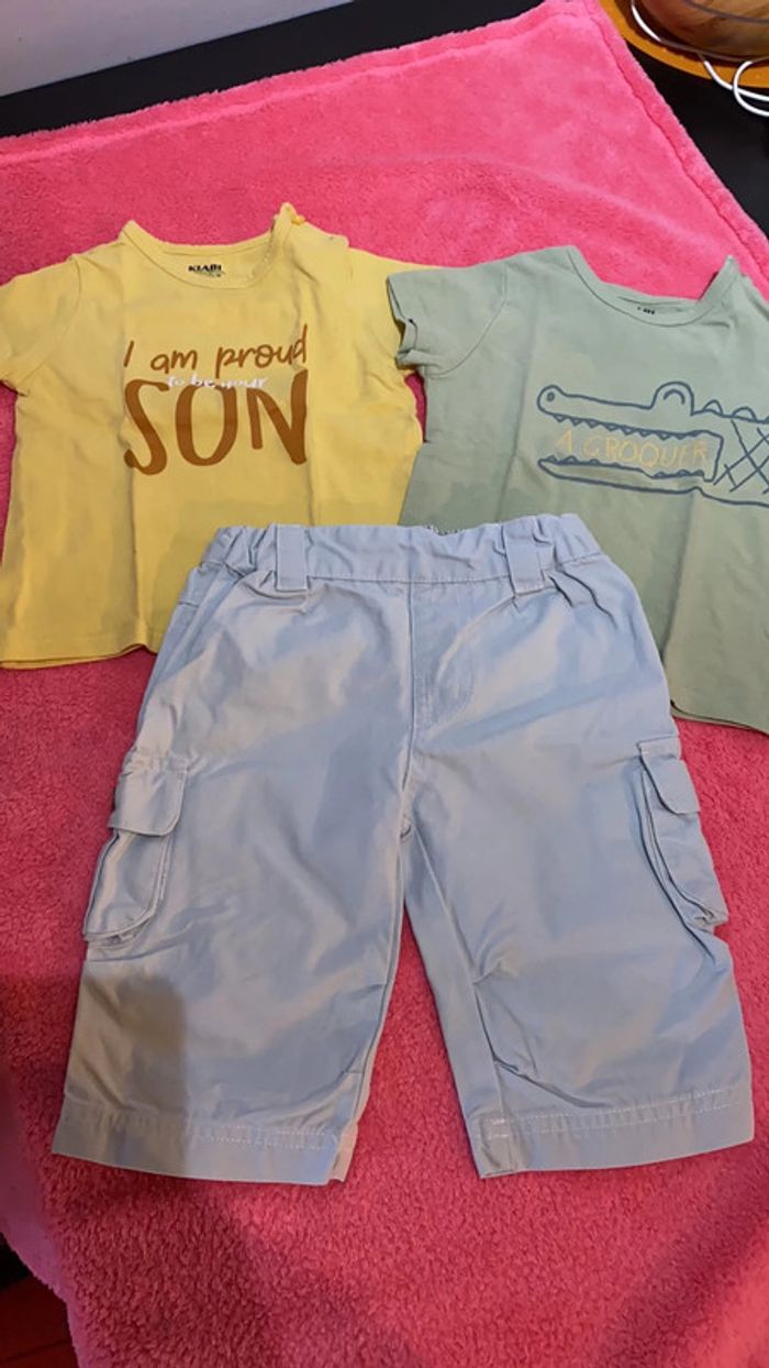 pantalon 6 mois Noukies jamais porté avec boutons réglable à la taille 2 tee-shirts 9 mois kiabi porté qq fois #lila201822_6_mois_garçon #lila201822_9_mois_garçon