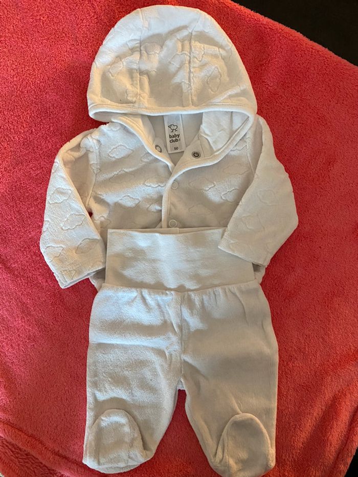 ensemble avec gilet à pression et capuche motif nuage #lila201822_nouveau_né_garçon #lila201822_nouveau_né_fille