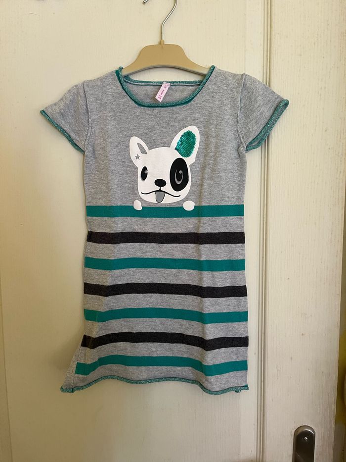 Vends robe manches courtes rayée grise et bleu en très bon état