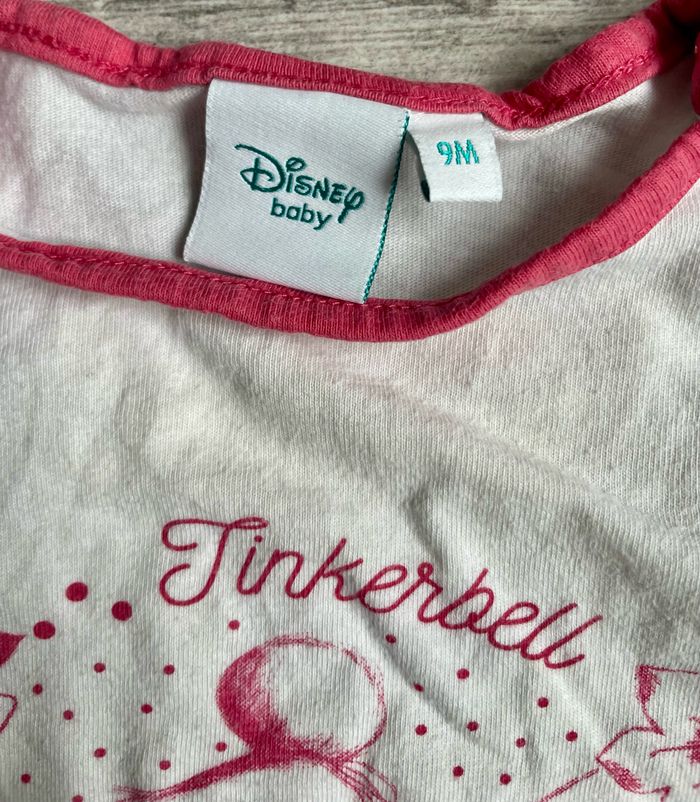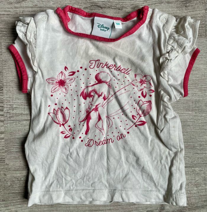 Tee shirt à manches courtes de la licence la Fée Clochette de Disney Taille 9 mois Occasion, bon état