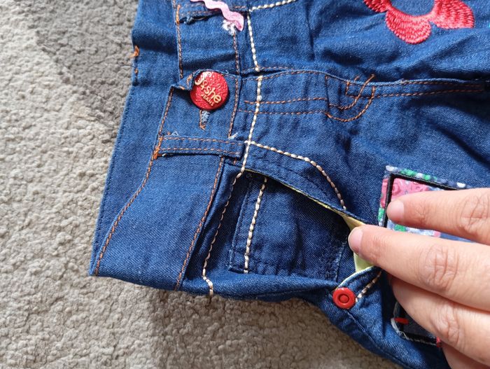 Joli short fille effet jean, en très bon état cependant petit Fil tiré voir dernière photo. Taille 2 ans.