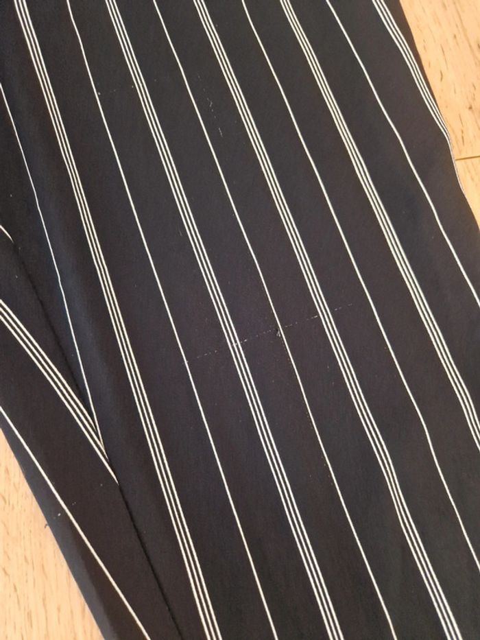 Pantalon fluide bleu marine a rayures blanches Juste un leger trait d'accro (photo 2) sinon aucun autre defaut