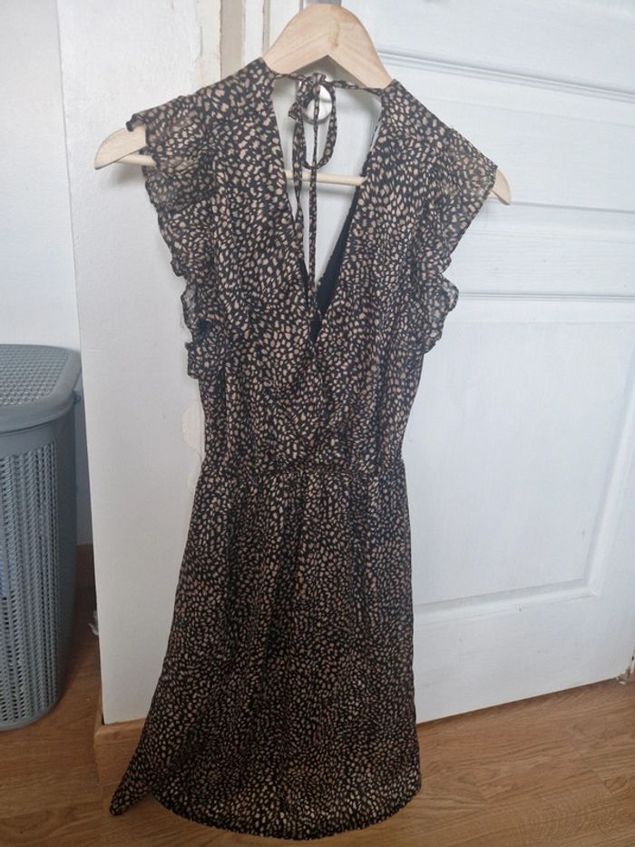 Tres jolie robe de fête noire et dorée. Petits volants sur les manches. Très jolie matière Correspond à une taille S Portee une seule fois