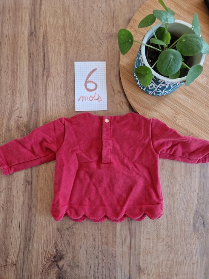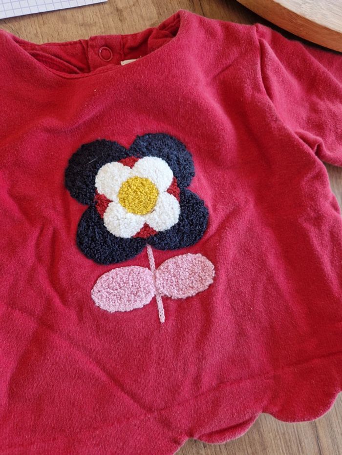 Pull rouge a fleur de chez Jacadi Porté 2 fois