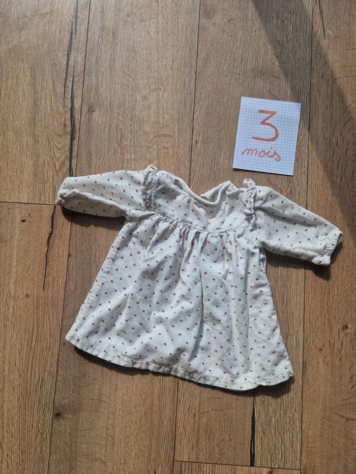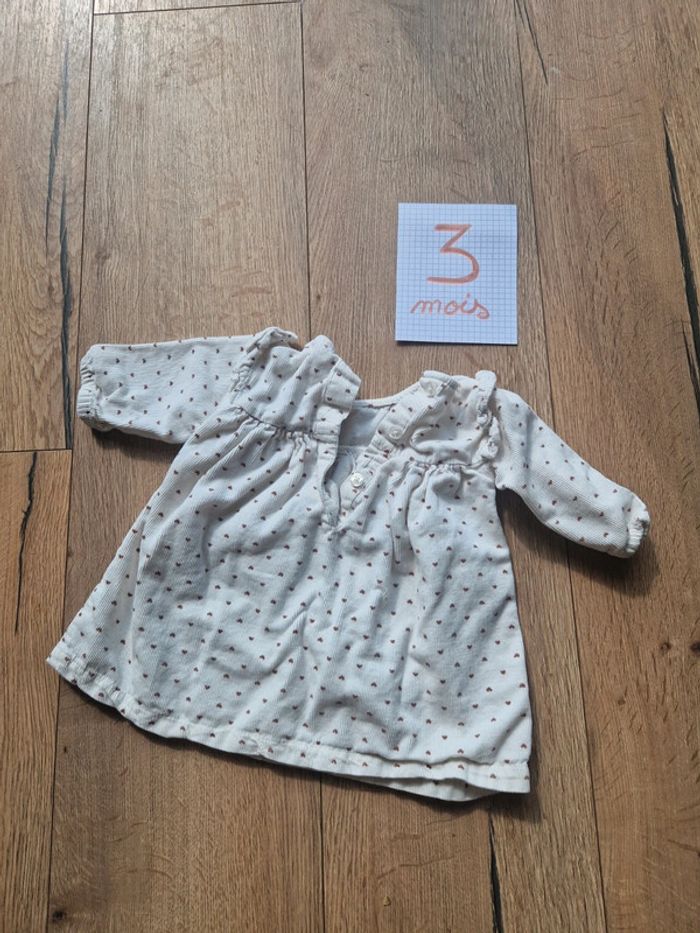 Jolie robe ecru avec coeur marron Petits volants sur les épaules
