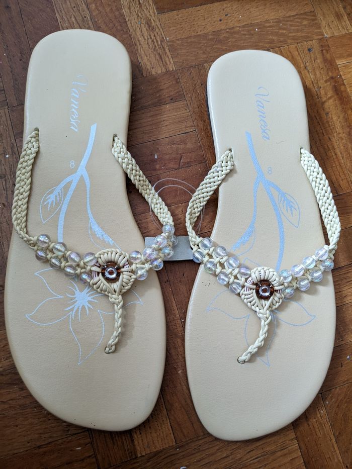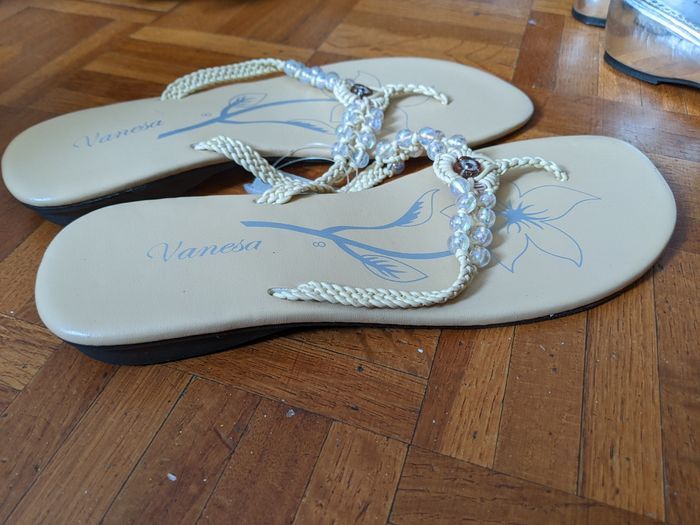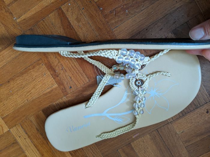 Sandales plates à brides crochet dentelle et perles 40 Neuf jamais porté Taille 8 équivalent à 40 Très jolies portés et très confortables #yipin_femme_chaussures