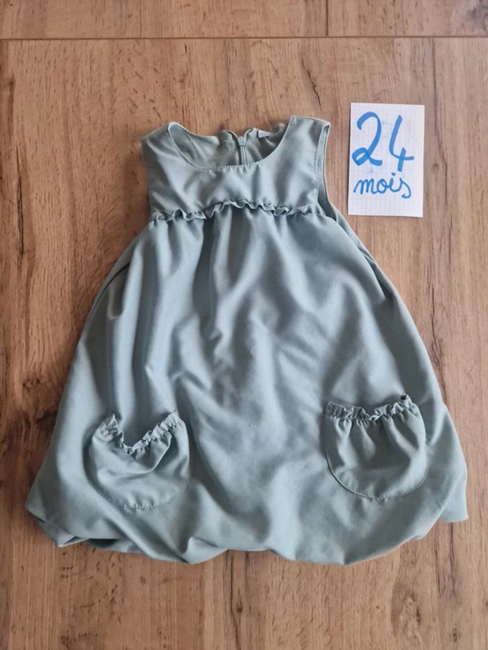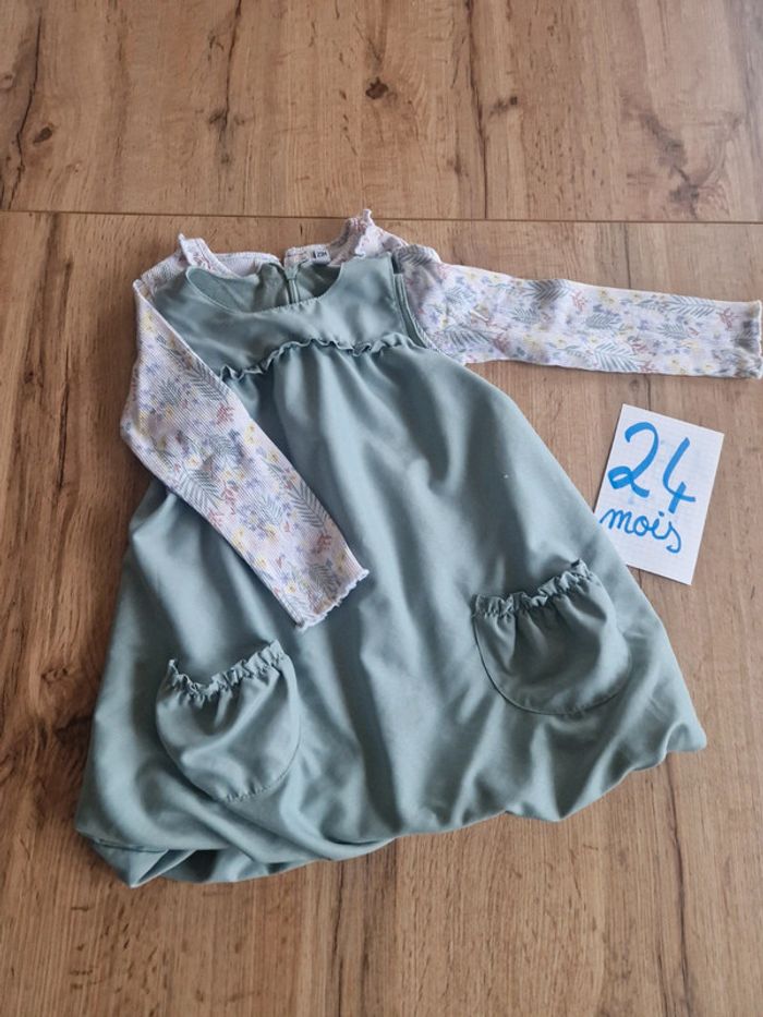Jolie robe boule vert d'eau et tee shirt a fleur avec petit col qui ressort de la robe