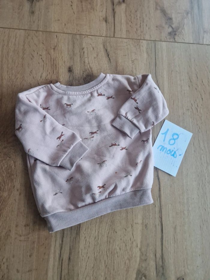 Pull rose pale, motif cheval Taille grand correspond a du 24 mois alors qu'il est indiqué 12-18