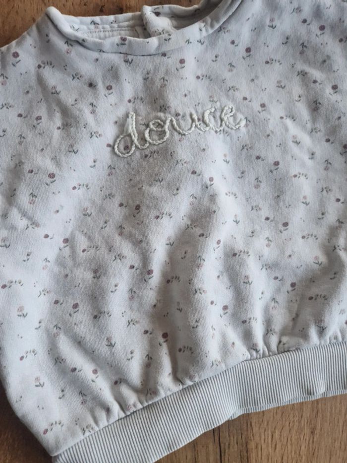 Sweat a fleur, "douce" kiabi Couleur douce Taches de feutre sur le bout de la manche gauche