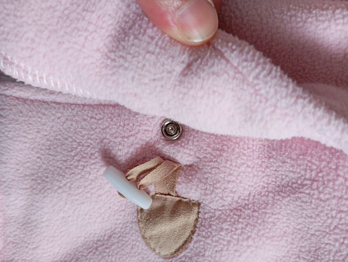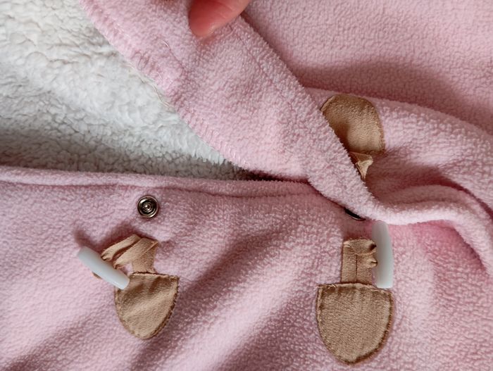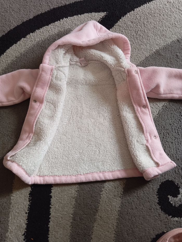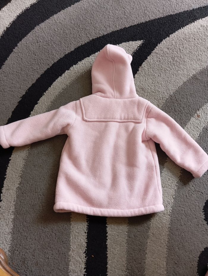 Manteau fille en bon état, manque certains boutons de pression mais ferme grâce aux gros boutons. Taille 12 mois.