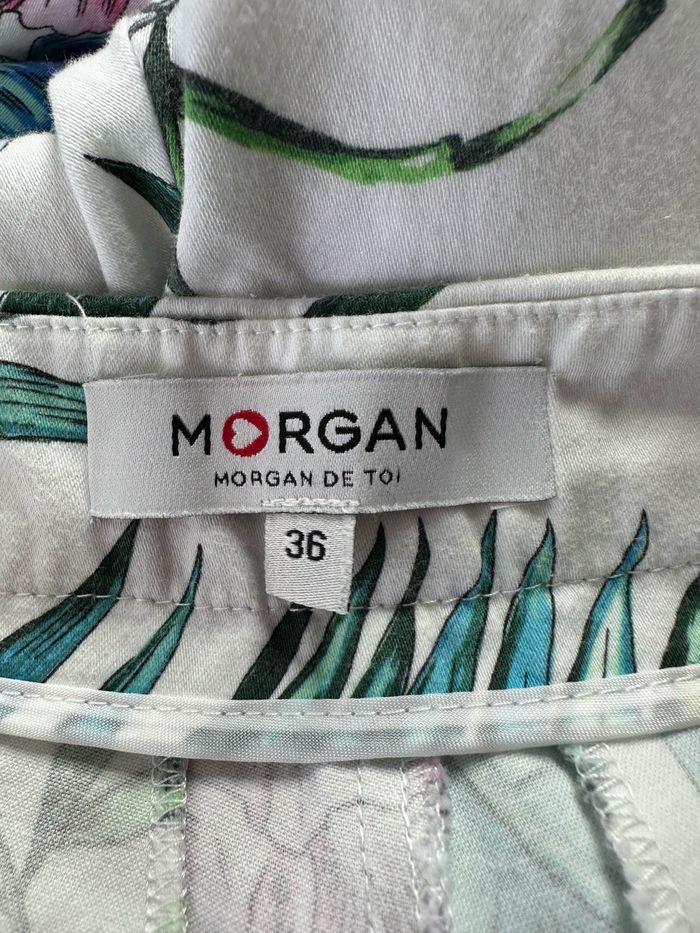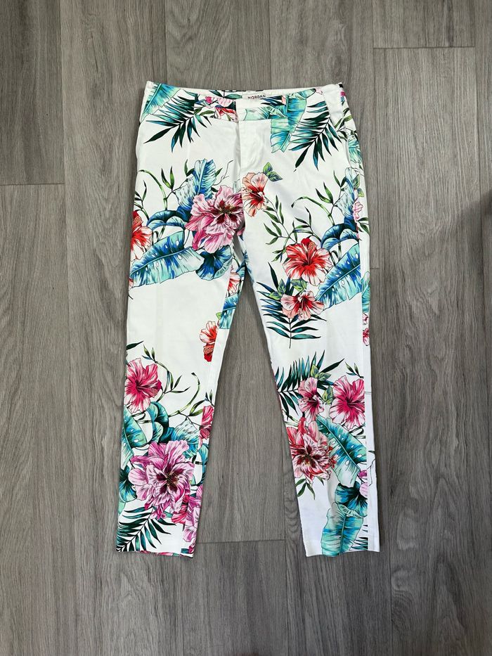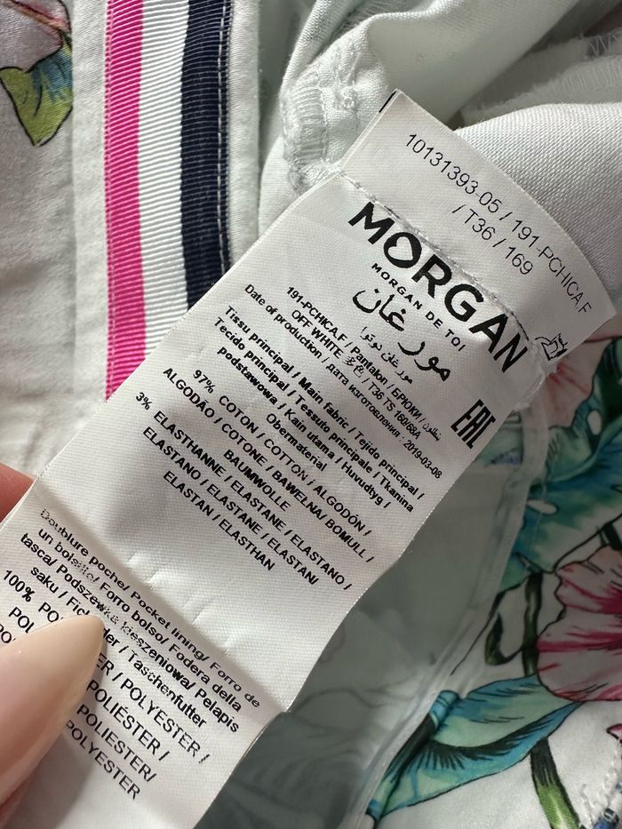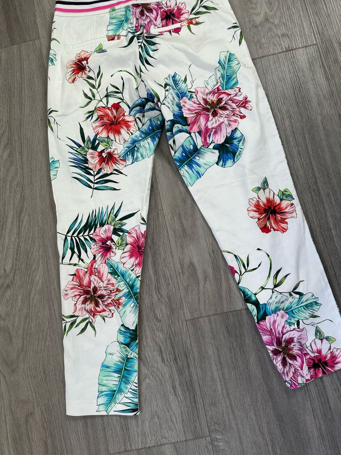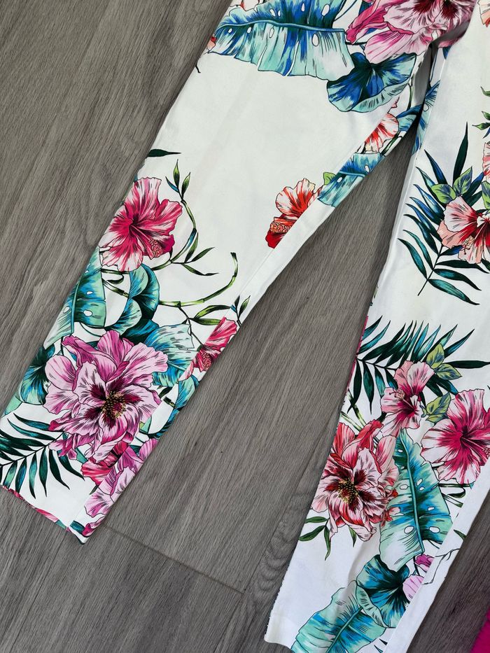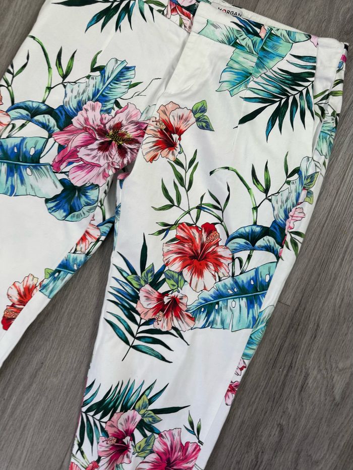 Pantalon - Excellent état - Taille 36 équivalent S - Blanc et multicolore - Imprimés fleurs tropicales - Marque Morgan - Tissus stretch - Coton et élastane Dimensions: - 36 à 38cm à la taille - 66cm entre jambe - 87cm de long