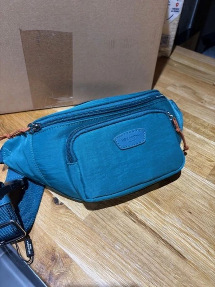 Hexagona sac banane en cuir de vachette interieur en nylon plusieurs pochettes a fermetures eclair neuf jamais utilisé