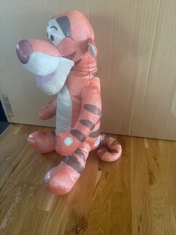 peluche sonore disney 100 ans winnie l'ourson 40 cm de hauteur un petit bouton sur la main permet d'entendre les bonds de tigrou neuve sans etiquette