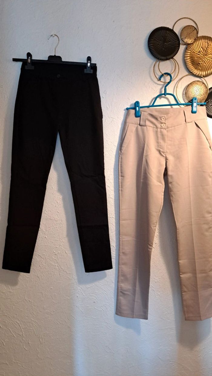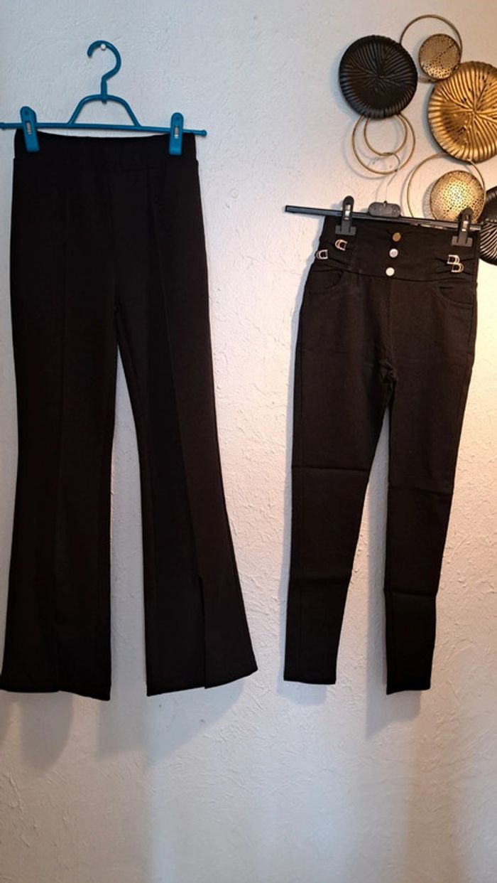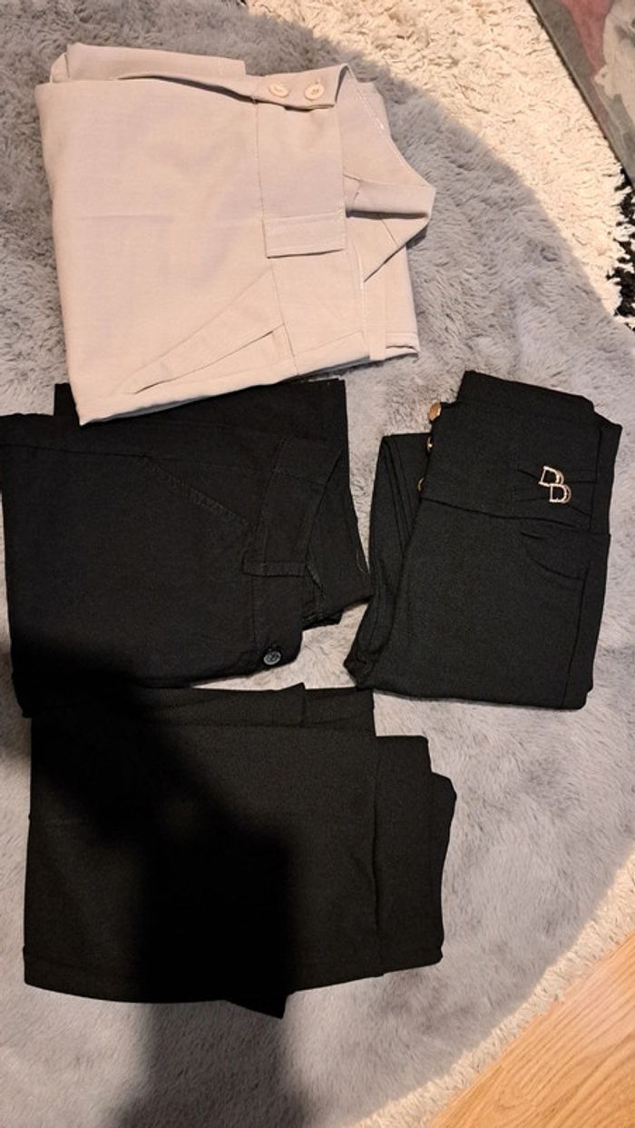 Lot de 4 pantalons Je n accepte aucune offre Convient plus pour un 36 -legging petit défaut mis photo ( ne se voit pas trop) Taille s/m ( longueur 89cm) - beige taille 2 ( convient plus pour un 36 ( longueur 100 cm. Mesure taille 37 cm) -pantalon legging ( ouvert sur le bas) taille unique (convient plus pour un 36/38) ( longueur 99 cm. Mesure taille 32 cm, élastique étirée 44 cm) -pantalon noir. taille S ( longueur 94 cm. Mesure taille 29 cm