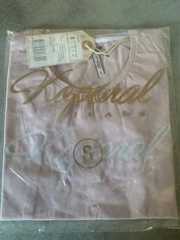 T SHIRT KAPORAL COULEUR LAVANDE LOGO KAPORAL JEANS EN GRIS T SHIRT A MANCHES COURTES ET COL ROND TISSUS 95% COTON 5% ELASTANE STRETCH EXTENSIBLE JAMAIS UTILISE ENCORE AVEC ETIQUETTES