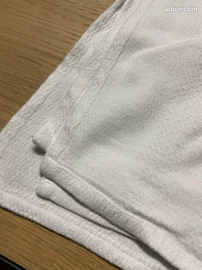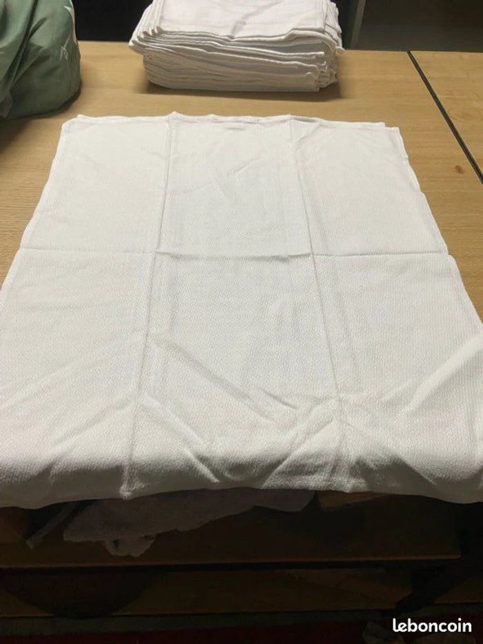Lot de 12 serviettes ou torchons en coton de taille 60x70 cm Peut aller jusque 64x74 cm D’occasion mais en bon état général toujours laver en blanchisserie Revers cousu tout le tour Très bonne qualité 150 grammes la pièce Vendu 10 euros le lot de 12 pièces