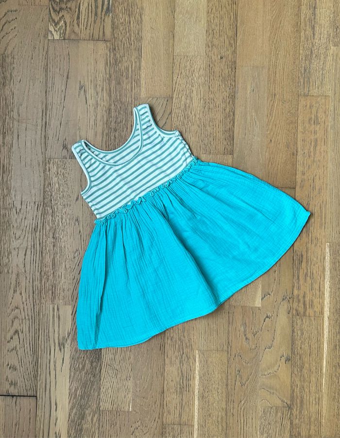 Robe à rayures et jupe turquoise 12/18 mois Zara