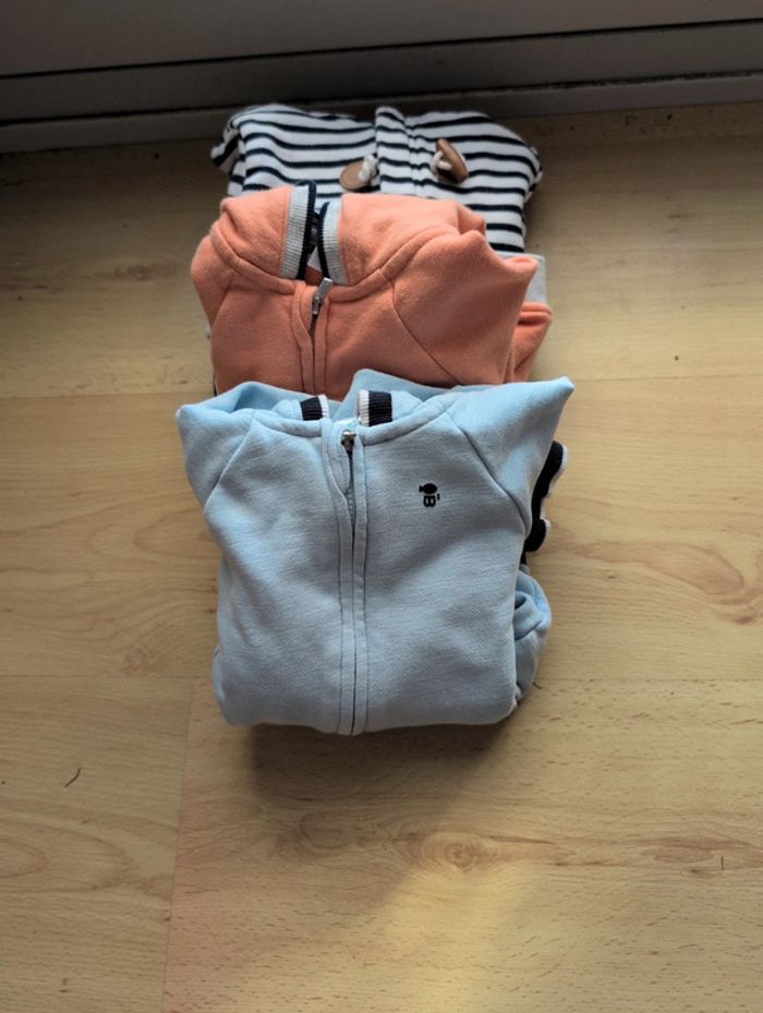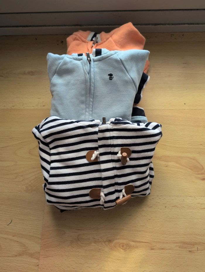 Lot de 3 Sweat à capuche zippé molleton bébé garçon 23 mois Obaibi