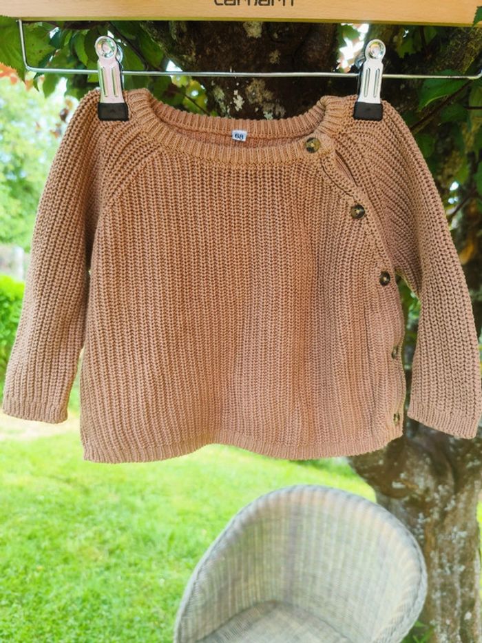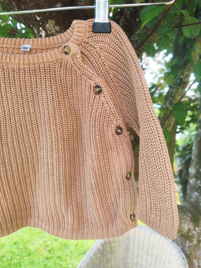 Pull Zeeman bébé, couleur caramel, boutonné sur la longueur, 100% coton, taille 6-9 mois, très bon état