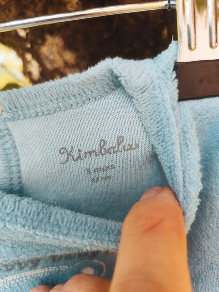 Pyjama bébé Kimbaloo, velours, hiver, bleu, nounours, taille 3 mois, excellent état, il n'a été porté qu'une ou 2 fois
