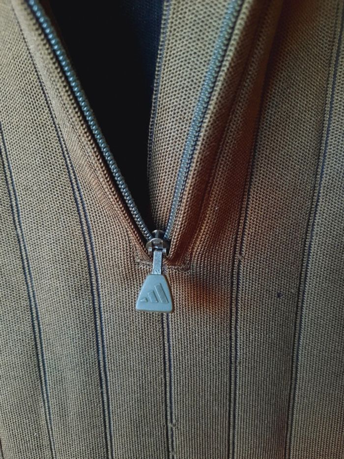 Polo Adidas Golf, kaki, vintage, années 2000, taille 14 ans, col à fermeture éclair, 55% coton et 45% polyester, la marque aux 3 bandes, le tissus à quelques "piqûres", bon état