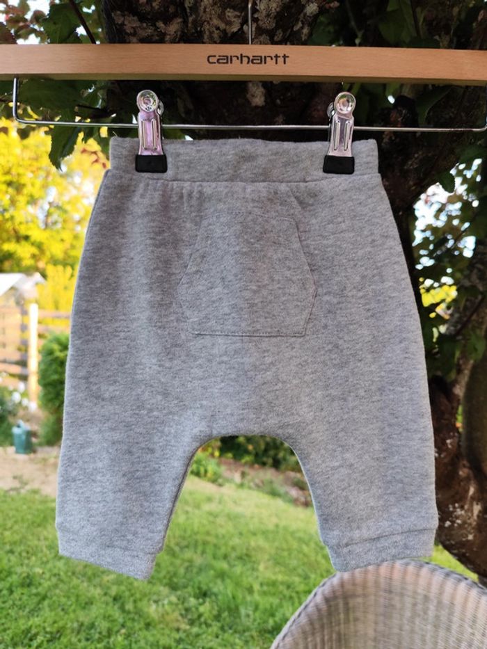 Pantalon Bout'chou bio, gris, poche kangourou, tout mignon, excellent état, taille 3 mois