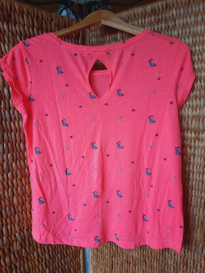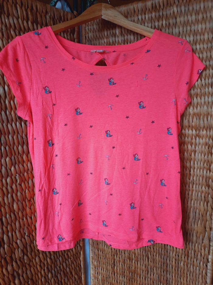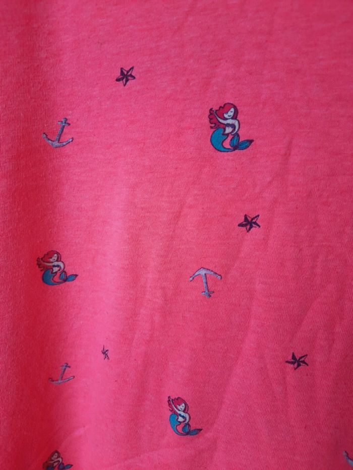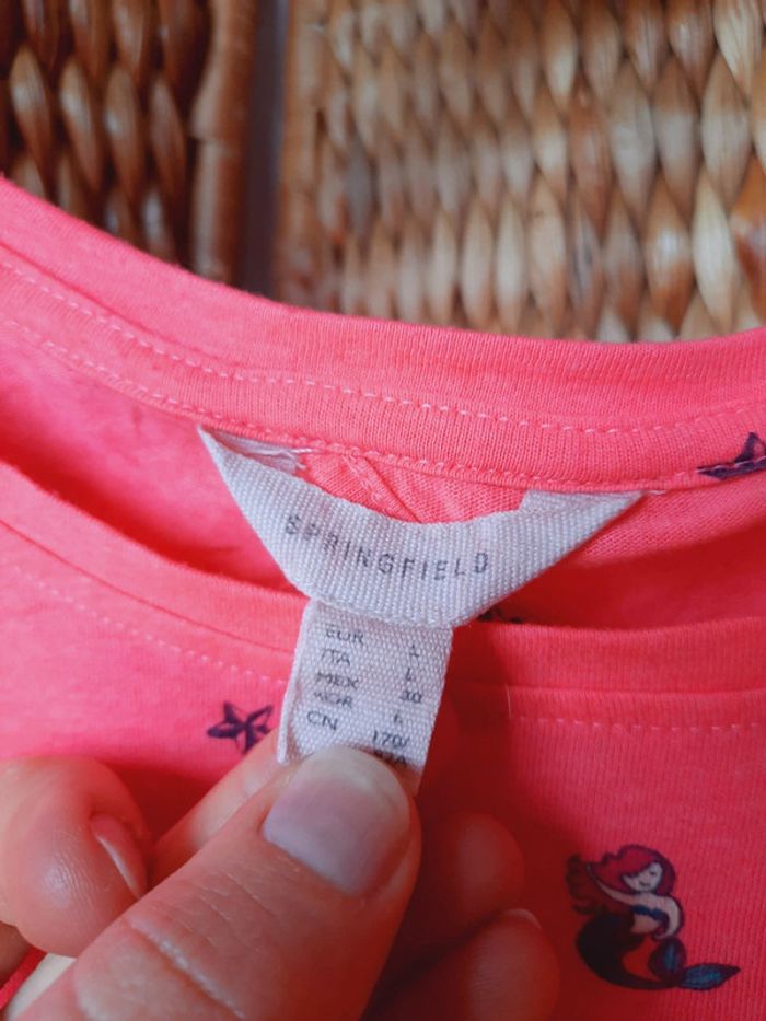 T-shirt Springfield, rose fluo, motifs sirène, étoile, ancre, petite ouverture dans le dos, taille L, très bon état