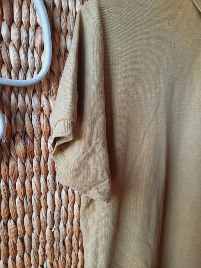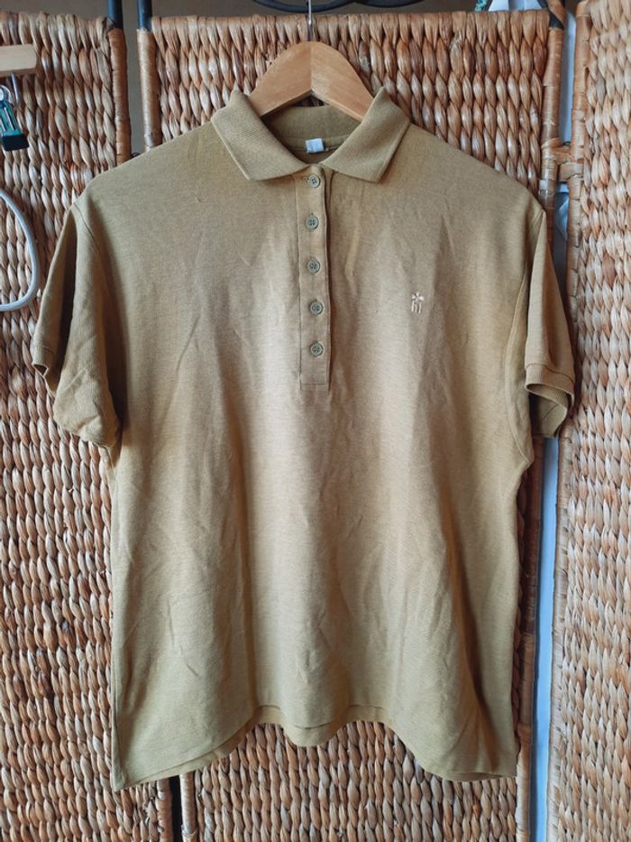 Polo moutarde kaki, 60% coton, 40% polyester, boutonné, bon état
