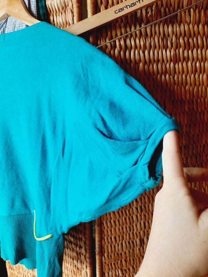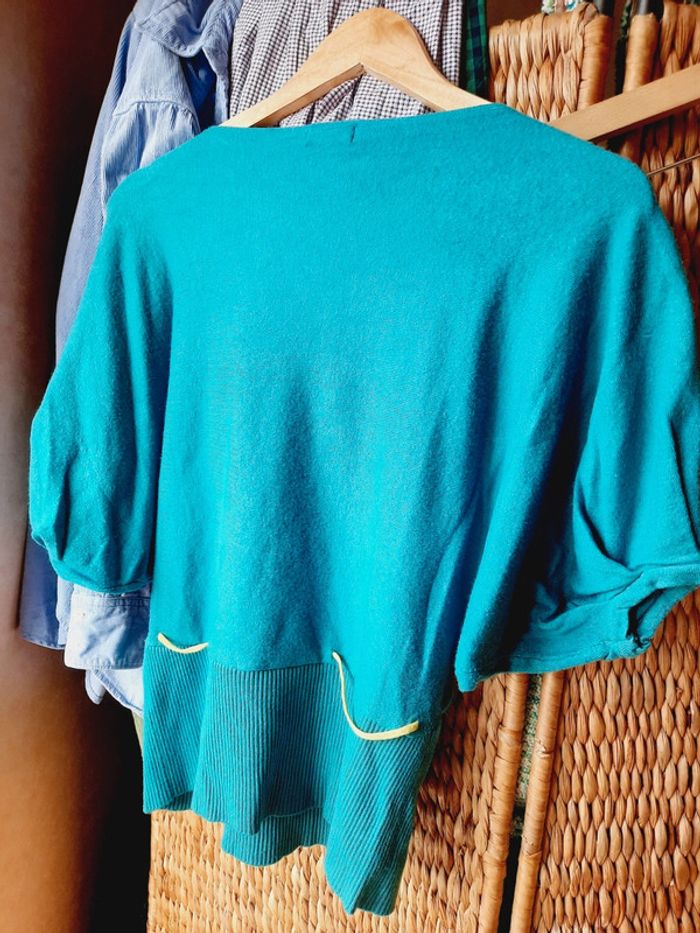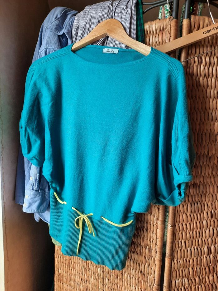T-shirt chauve-souris turquoise, laçage à la taille, manches courtes chauve-souris, taille 38/40, très bon état