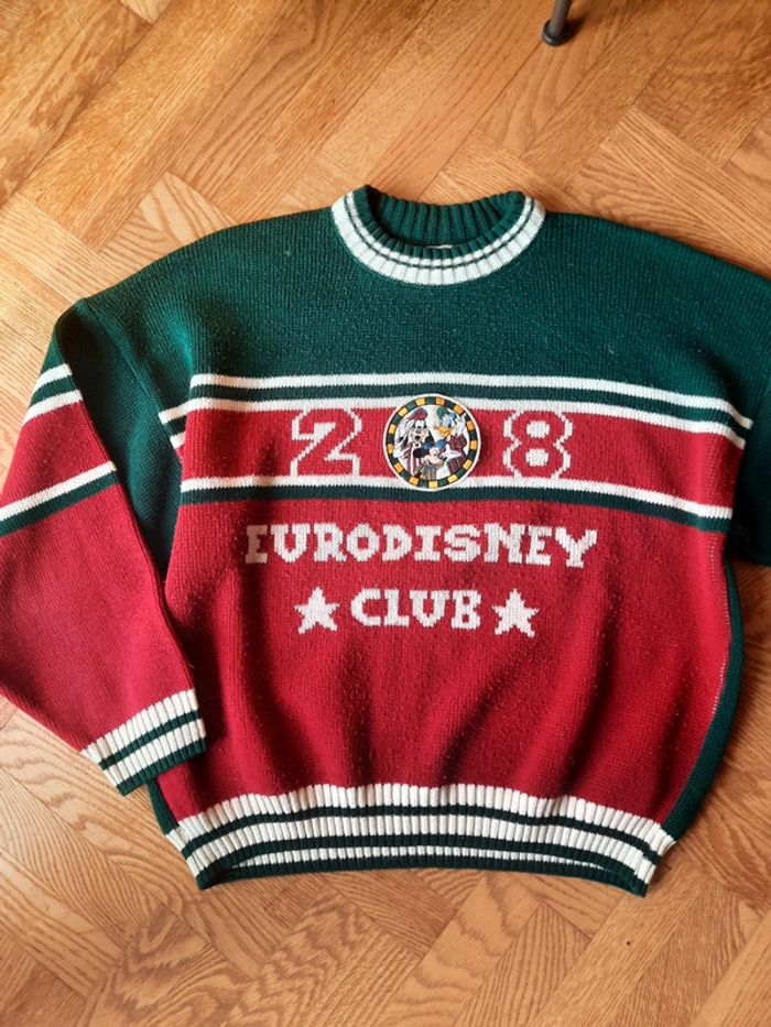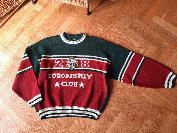 Pull vintage Eurodisney club, 14/16 ans, patch Mickey, Donald, Dingo, années 90, très rare, très bon état