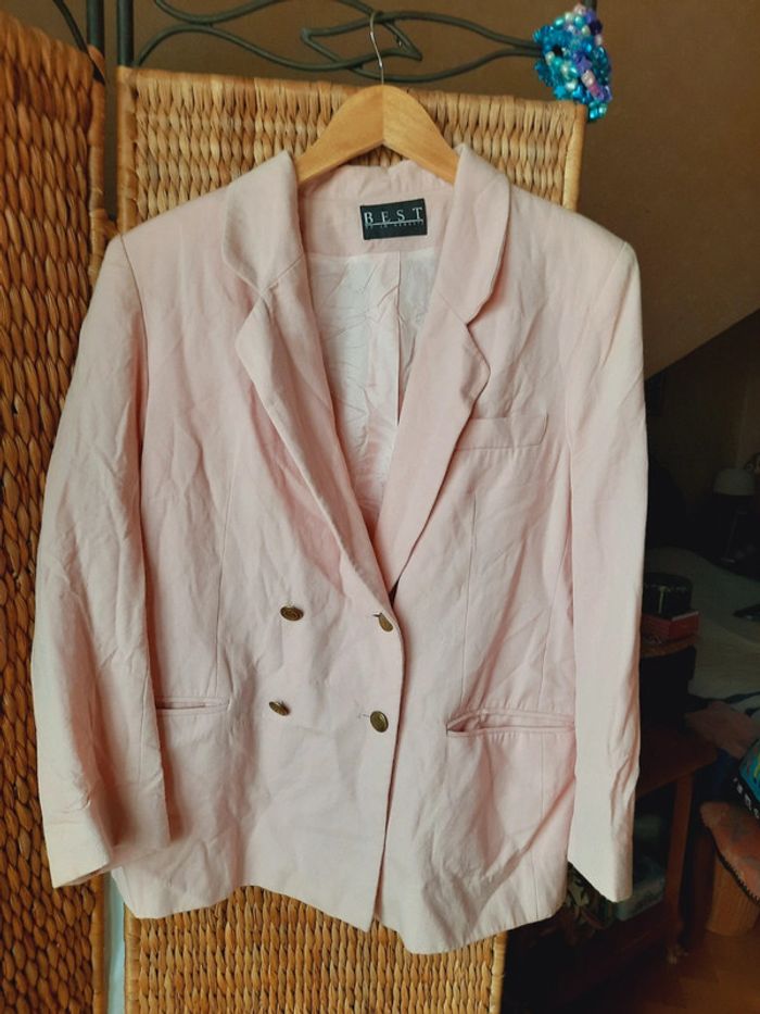 Veste Blazer Best La Redoute, rose poudré, 100% laine, boutons métalliques, taille 46, à poches, très bon état