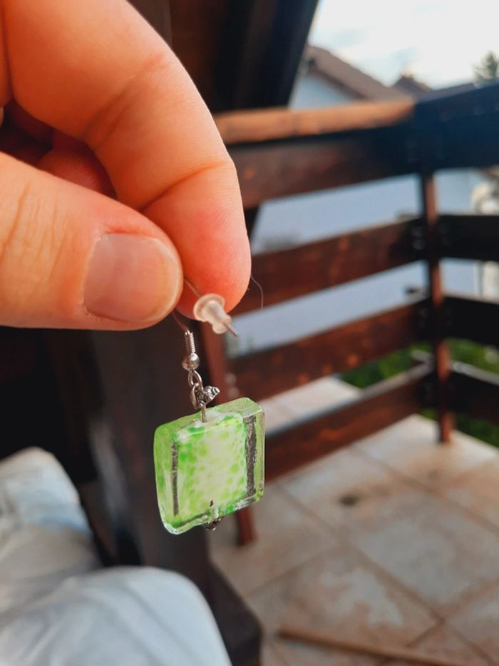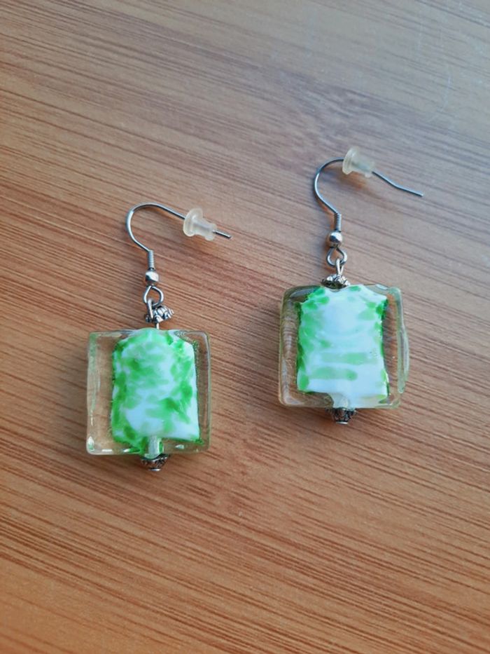 Boucles d'oreilles en verre, perles carrées vertes, neuves