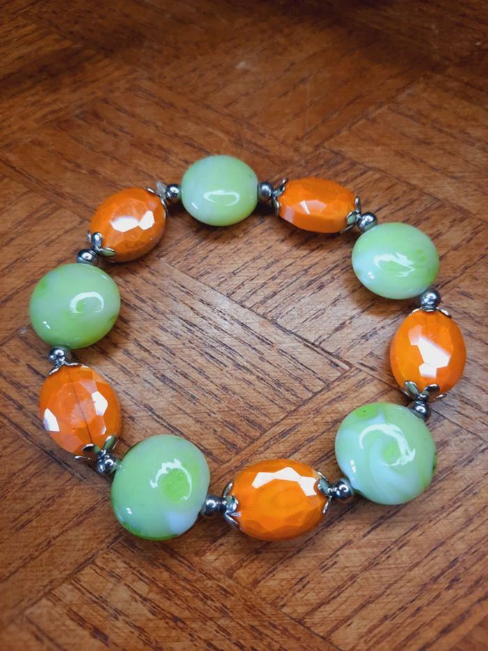 Bracelet en perles de verre, orange et vert pomme, comme des bonbons, modèle unique