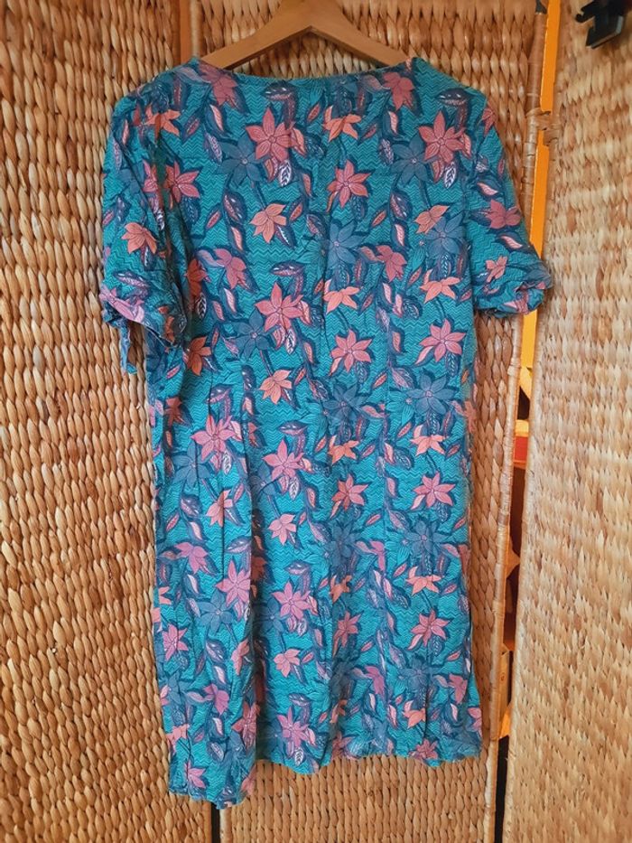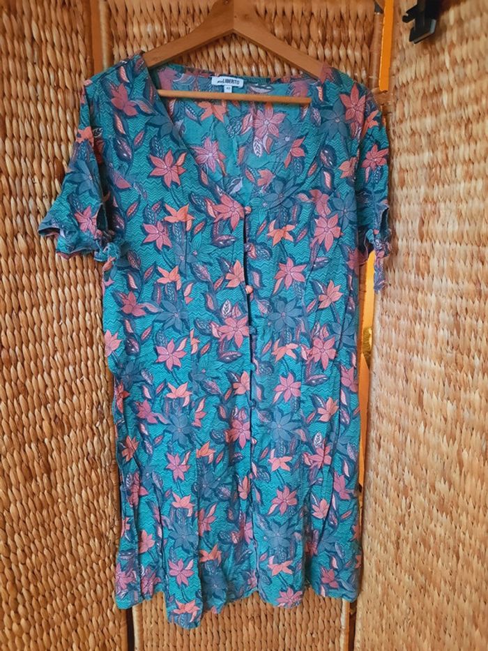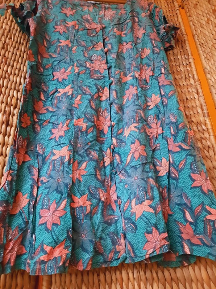Robe d'été Miss Liberto, boutonnée, turquoise à fleurs, taille 42, très bon état