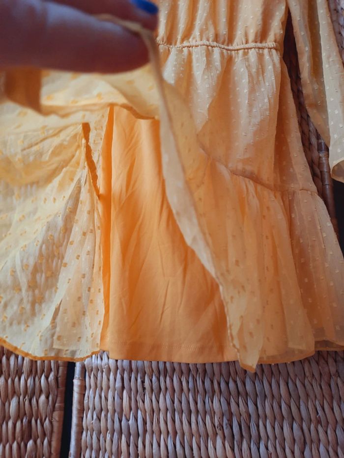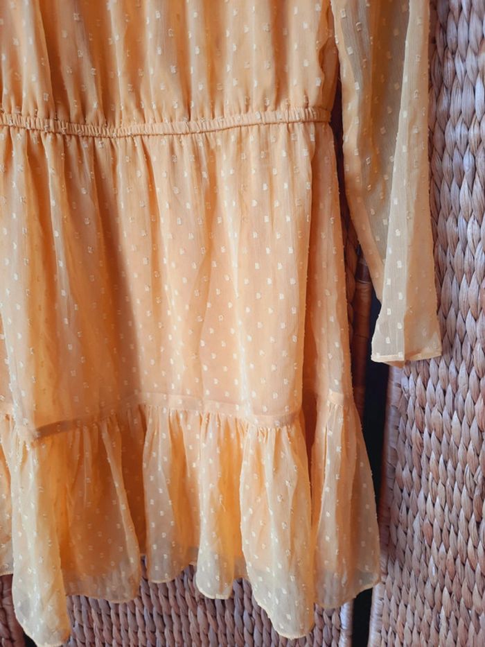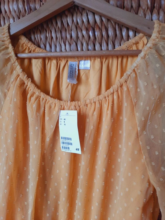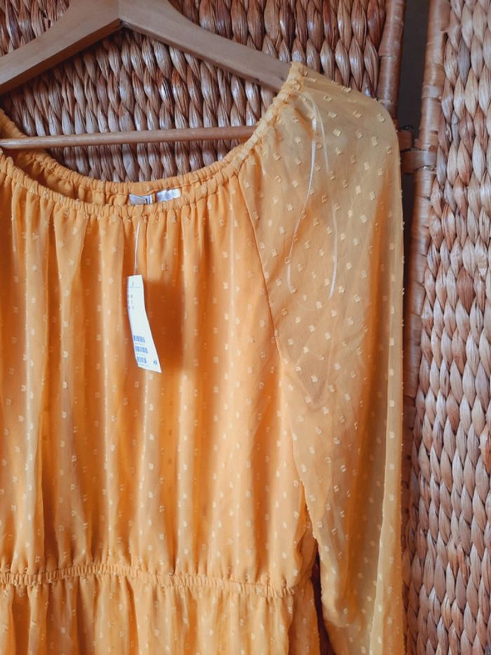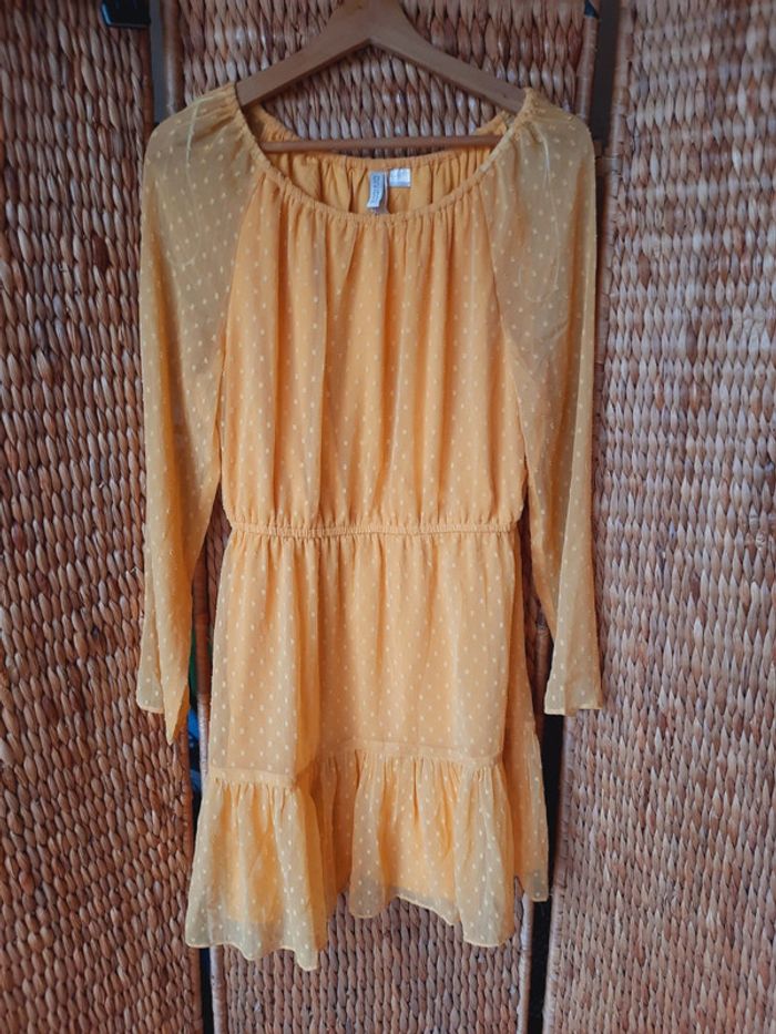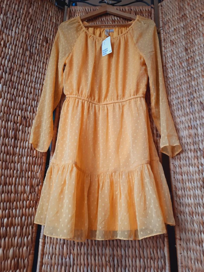 Robe H&M jaune mousseline, doublée, élastique à la taille, col rond, taille 40, neuve avec étiquette