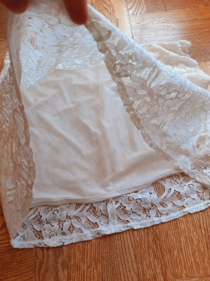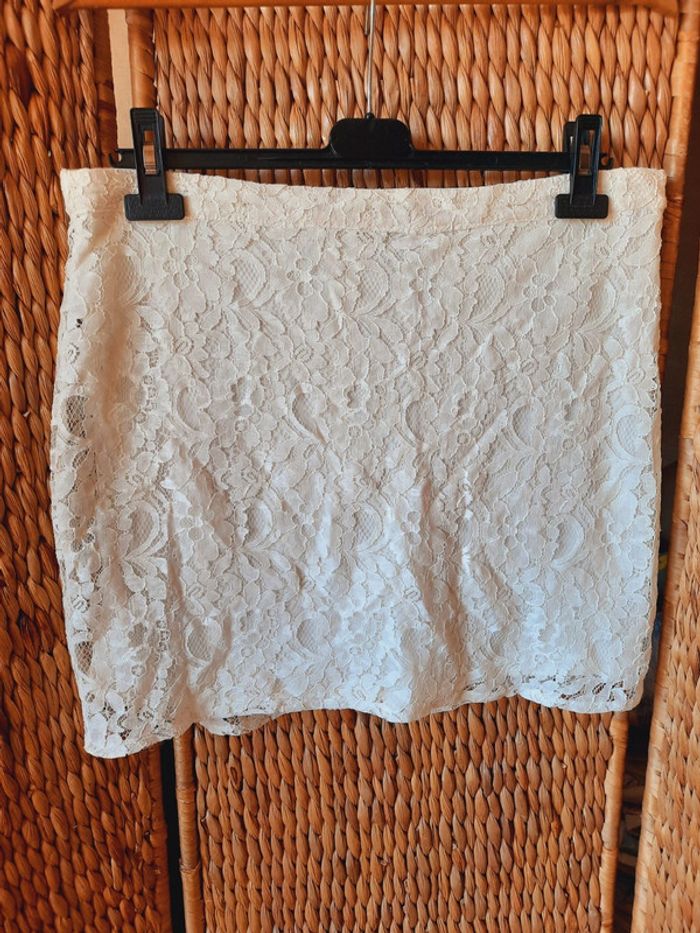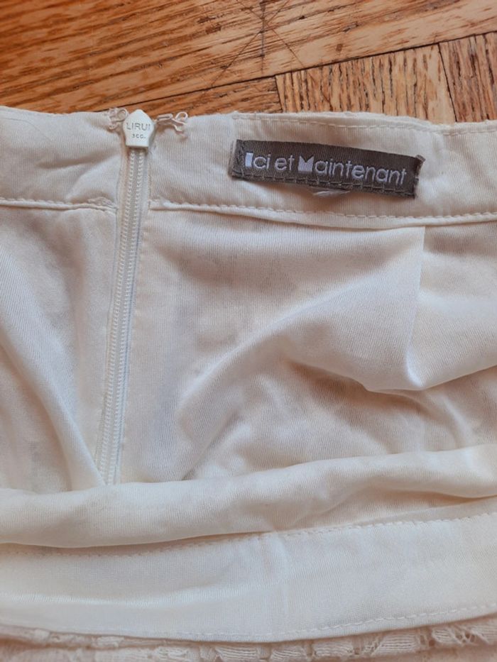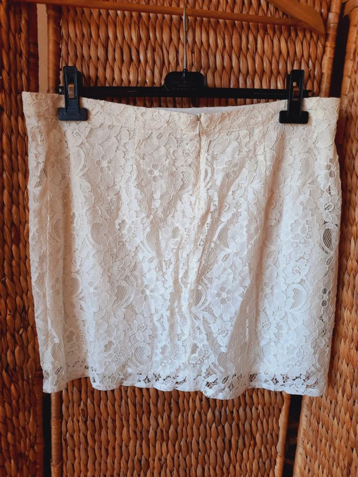 Jupe droite Ici et maintenant en dentelle, blanche écrue, doublée, fermeture éclair à l'arrière, taille 40, très bon état