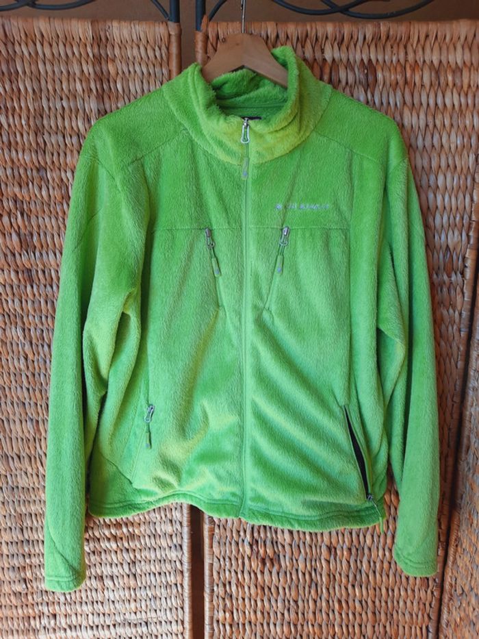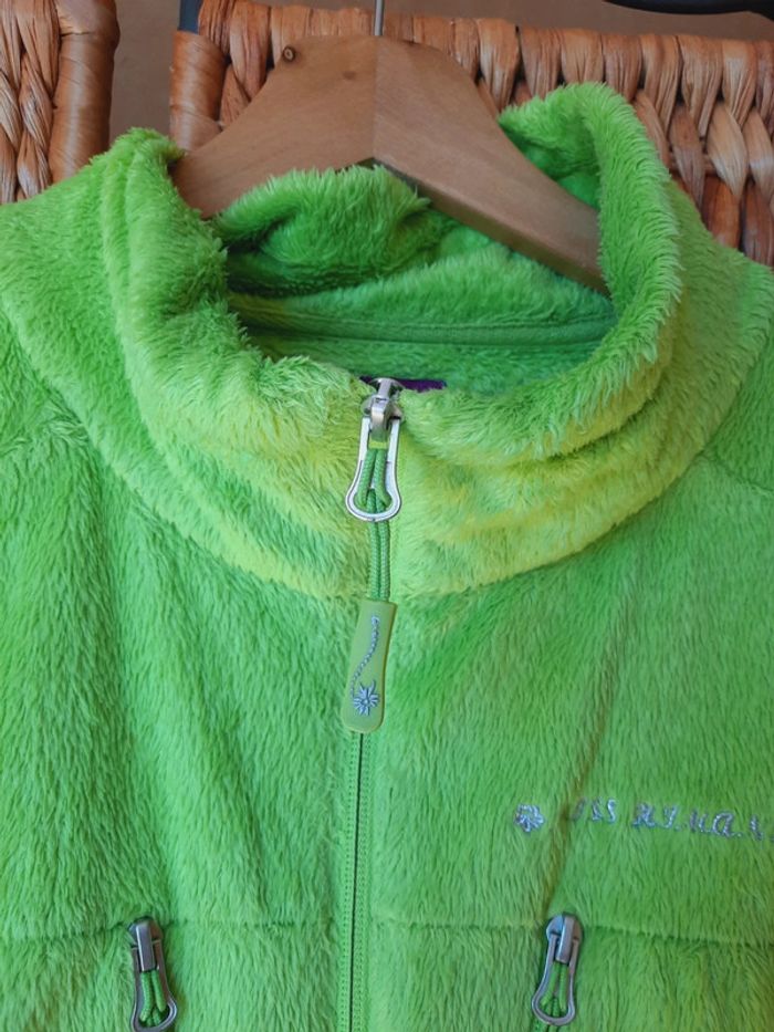 Veste polaire Miss Himani, petit col, vert pomme, poche à fermeture éclair dont 1 qui ne ferme plus, taille L