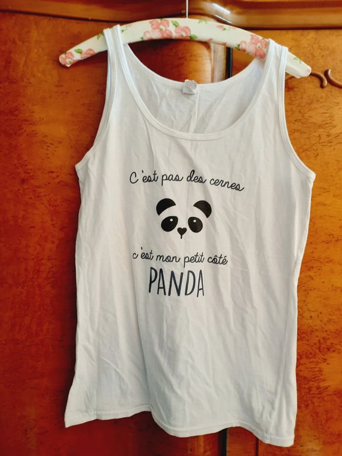 Débardeur Gildan, blanc imprimé Panda, taille L, très bon état