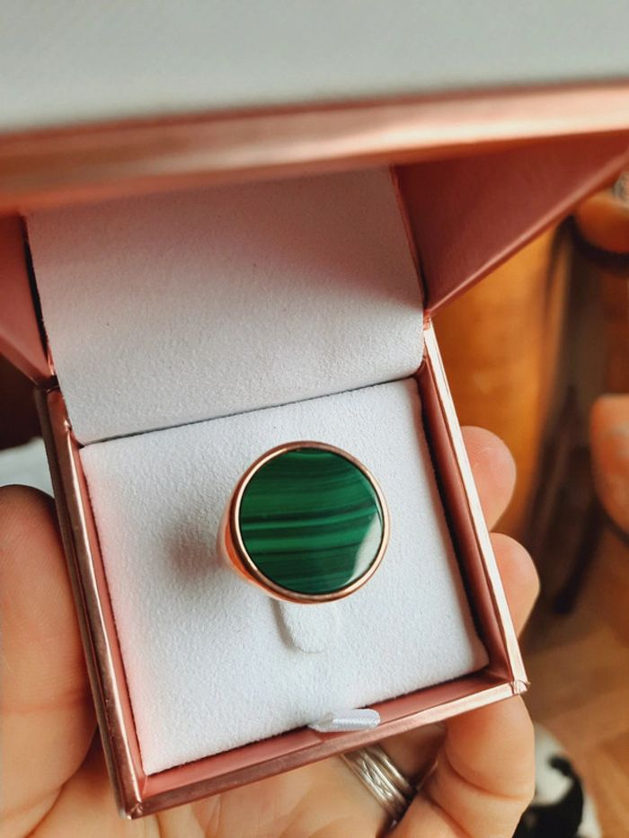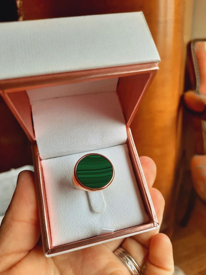 Bague Bronzallure ronde, rose gold, malachite, taille 56, dans son écrin, très bon état