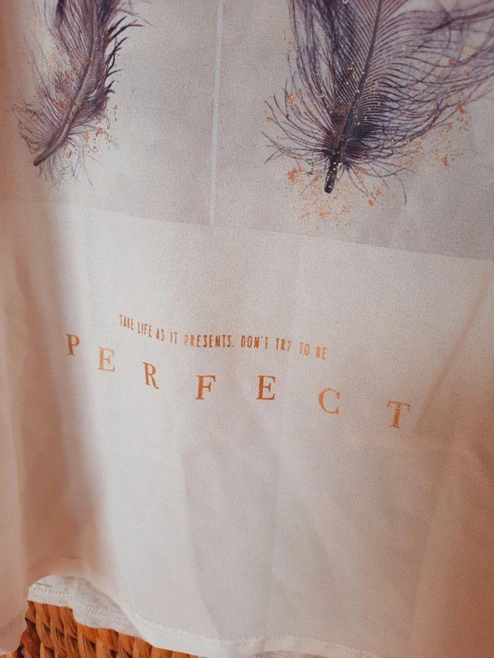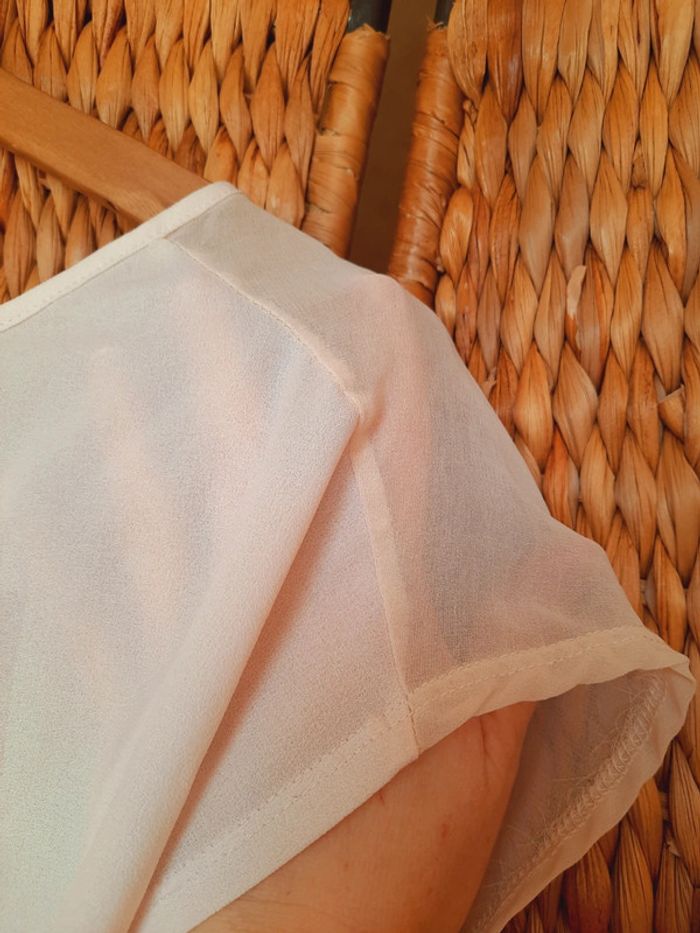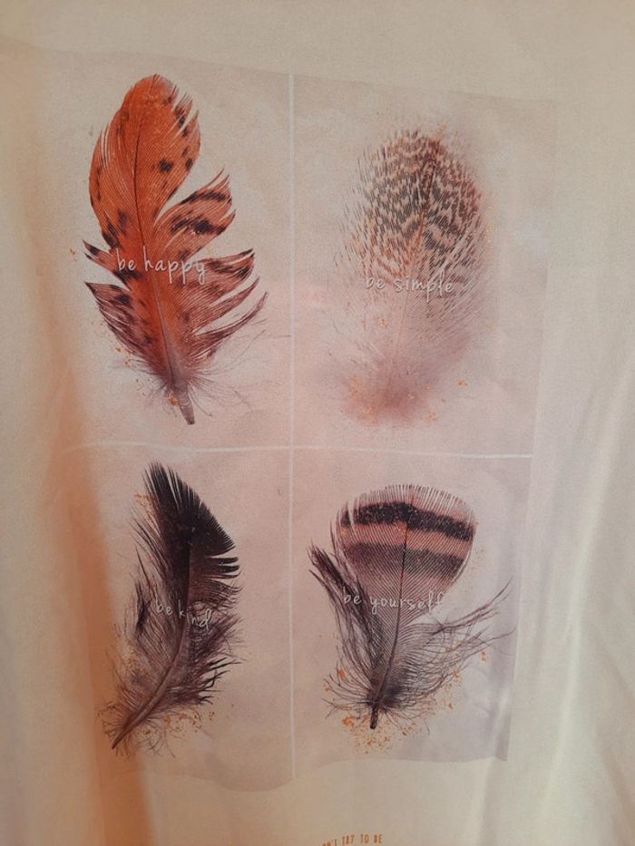 T-shirt Camaïeu mousseline, motifs plumes, haut du dos légèrement transparent, taille M, très bon état