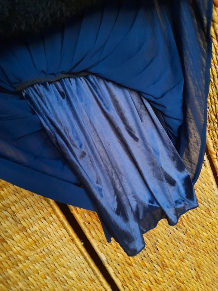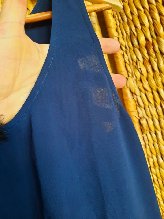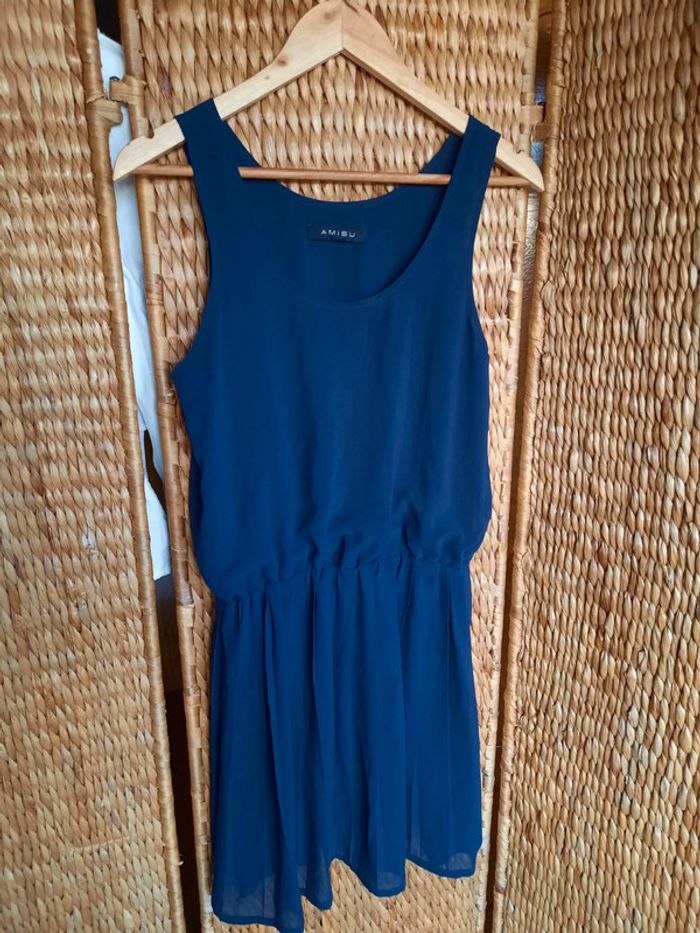 Robe Amisu, sans manches, mousseline bleue marine, élastique à la taille, taille 40, très bon état