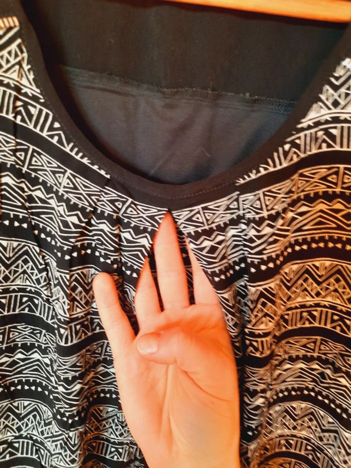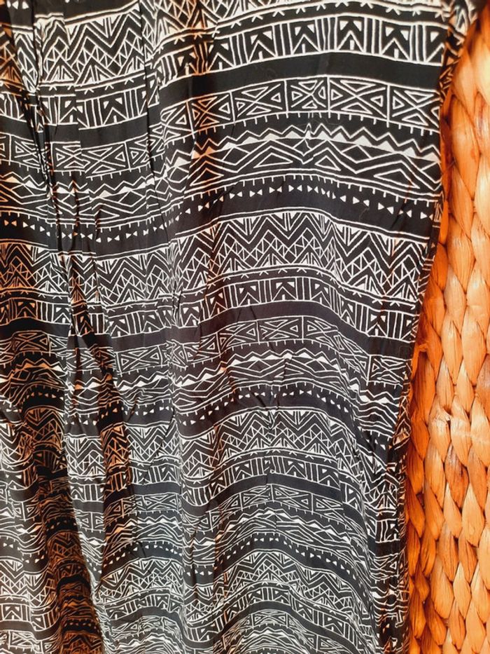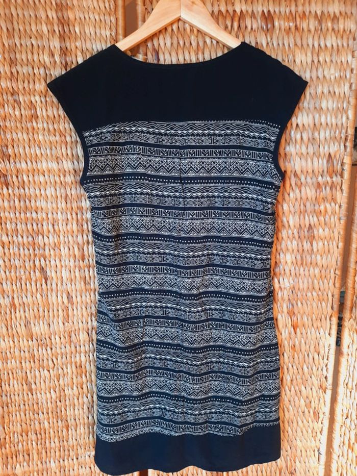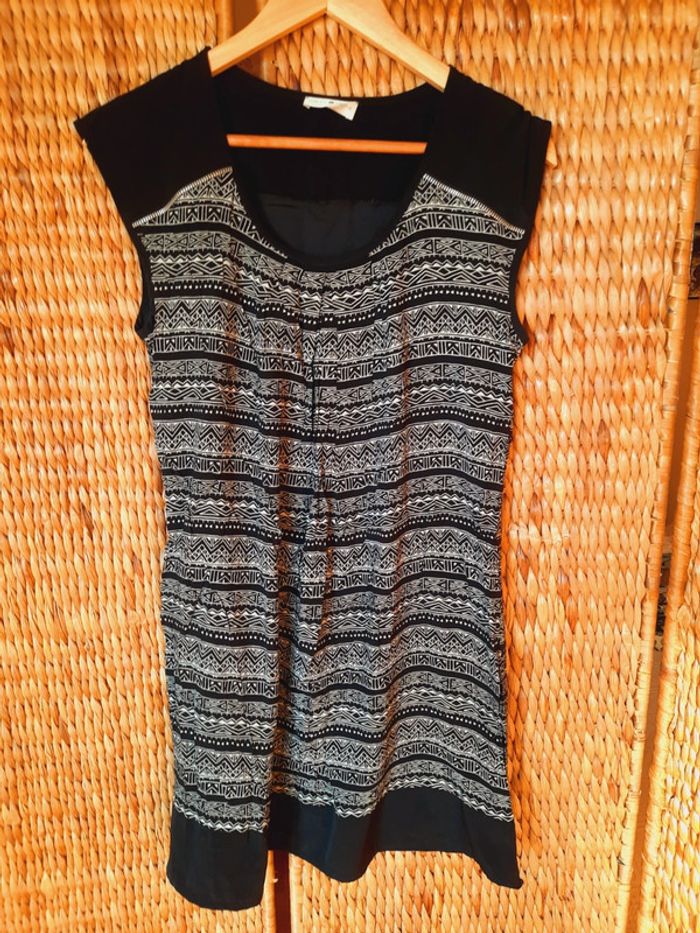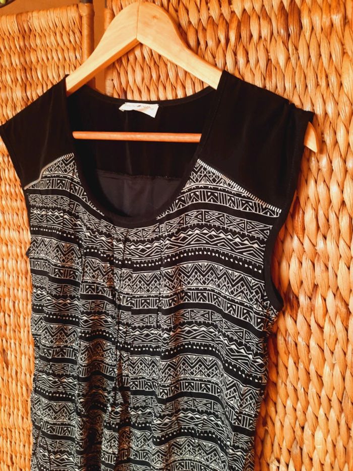 Robe cache cache sans manches, noire à motifs ethniques blancs, taille 40, très bon état